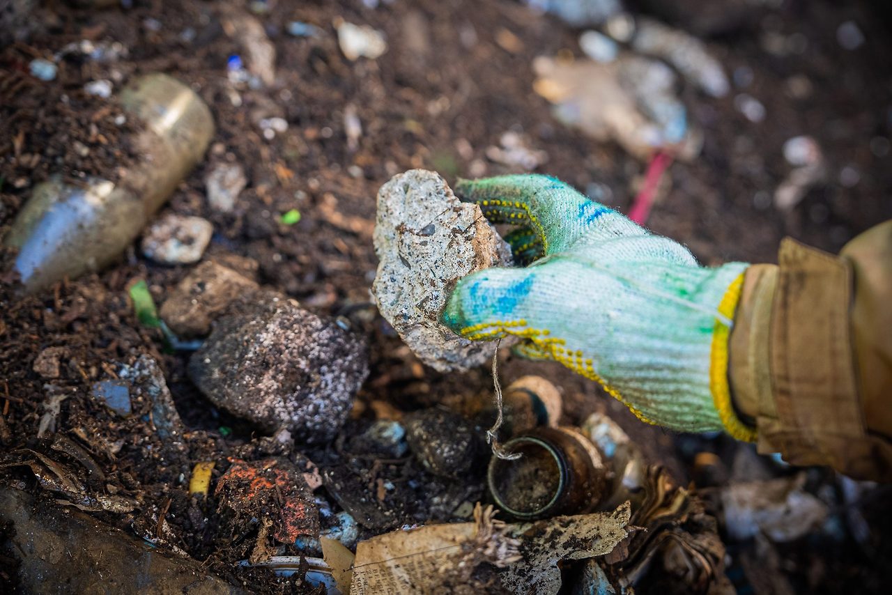We+는 Dezeen에게 "우리는 유리, 세라믹, 콘크리트 등 재료별로 분류하기 어려운 여러 종류의 폐기물을 수거했다. 그런 다음 이 재료들을 분쇄하고 흙과 혼합하여 제품의 표면에 적용했다"고 말했다.