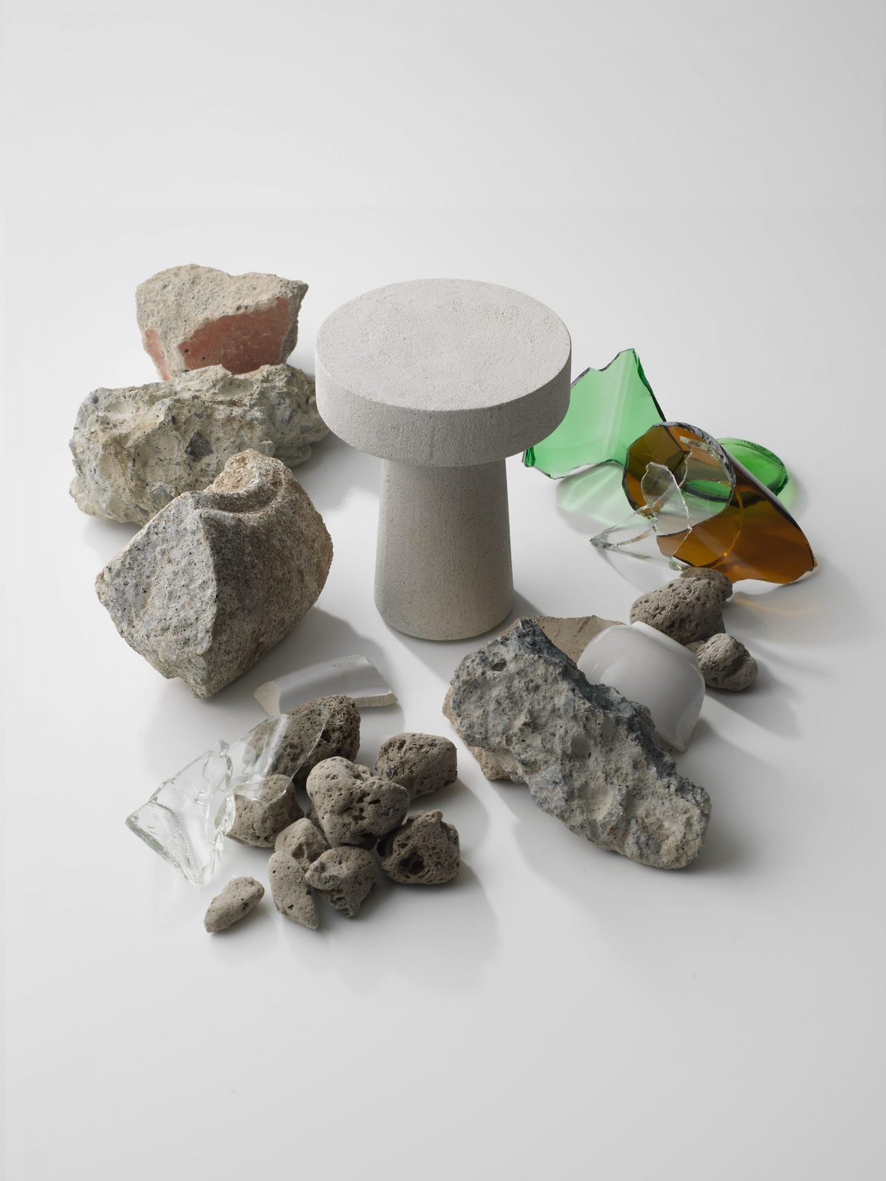 스튜디오는 Remains를 사용해 질감이 거친 테이블 램프를 제작했으며, 브랜드 측에 따르면 이 소재는 콘크리트와 비슷한 촉감을 가지면서도 더 따뜻하고 흙 같은 느낌을 준다고 설명했다.