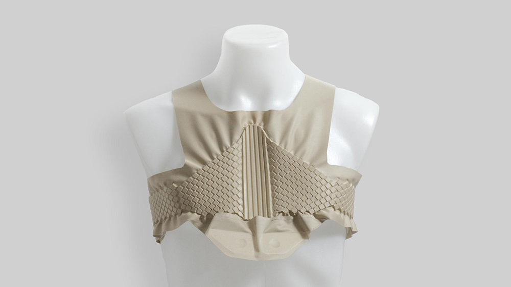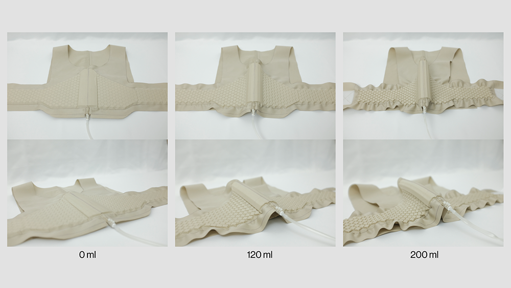 복잡한 심장 수술을 집도하기 위해 흉곽까지 열리는 가슴 개방수술 후에는 서 너 달이라는 긴 회복기간이 소요된다. 옥소브레이스의 디자인은 폐와 근육의 수축 이완 메커니즘에서 영감을 받았다. 두께감 있는 조직으로 뼈를 동반한 환부는 안정되게 감싸고 지탱하되, 그 외의 부분은 피부에 얇게 밀착될 수 있게 디자인했다. 가슴뼈가 서로 제자리에 들어맞을 때까지, 몸을 움직일 때마다 견디기 어려운 고통이 동반되고, 수술자리가 제대로 아물지 않으면 감염의 위염도 있어서, 가슴뼈를 안정되게 고정하는 것이 중요하다. 바람이 들어가 부풀어 오르고, 다시 빨아들여지는 방식으로 단단한 구조물을 만들 돼, 폴리스티렌 구슬의 밀집도에 변화를 주어 환자의 움직임에 반응할 수 있게 만들었다. 로봇공학의 원리를 이용해서 압력이 필요한 부분에 정확한 수축이 일어나고, 부드러운 연골 구조로 잘 구부러지도록 디자인했다. 인공 근육의 수축 구조에서 영감을 얻은 세포 그리드의 크기를 축소시켜서, 정교하게 다듬은 것이 최종 결과물이다. 덕분에 고통을 느끼는 환자에게 쾌적한 착용감과 안정감을 제공할 수 있다.