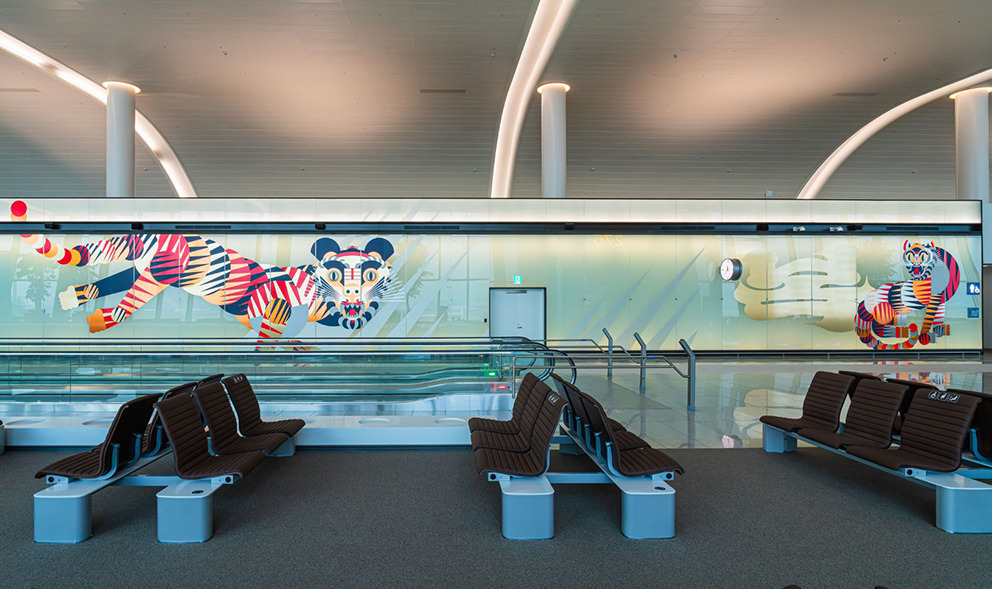 인천국제공학 제2여객터미널 탑승 게이트를 향해 걷다 보면, 한국적인 색을 물씬 풍기는 화려한 색감에 리듬감 있고 개성 넘치는 그래픽 작업을 만나게 된다.