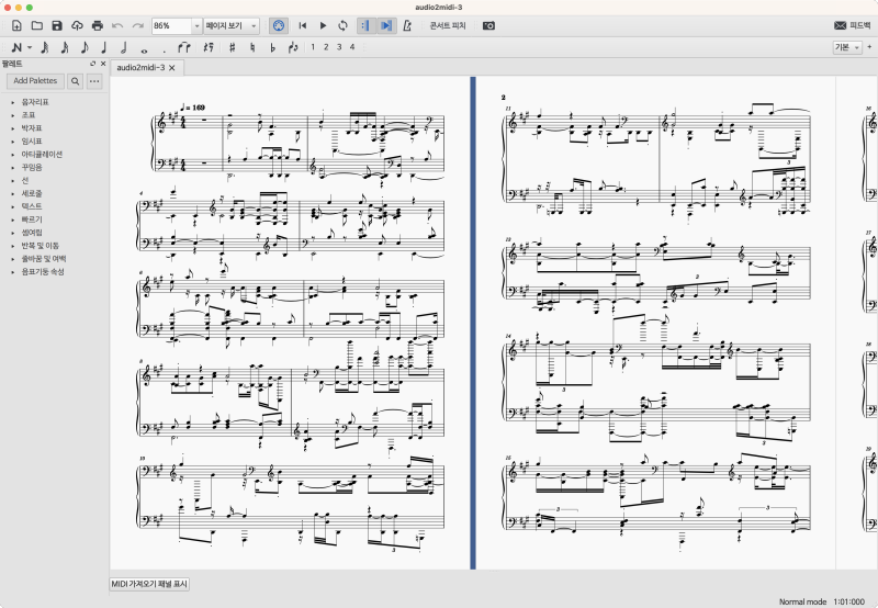 작업이 완료되기까지는 1분 정도의 시간이 걸리며, 변환이 완료되면 Download MIDI 단추를 눌러서 미디 파일을 컴퓨터에 저장하면 됩니다👍